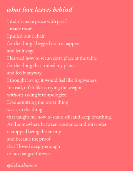 I’ve been building myself back-up on a foundation that also crumbled, where so much of what I believed about the world and myself was destroyed. Becoming a widow at 33 years old didn’t leave a tidy space in my life that time could just simply help feel smaller. Any growth and change that has happened has been something I’ve taken a very active role in. I’m proud of where I’ve come to, but it sure has not been about peacefully waiting for grief to feel like it takes up less space in my life. This has taken work.