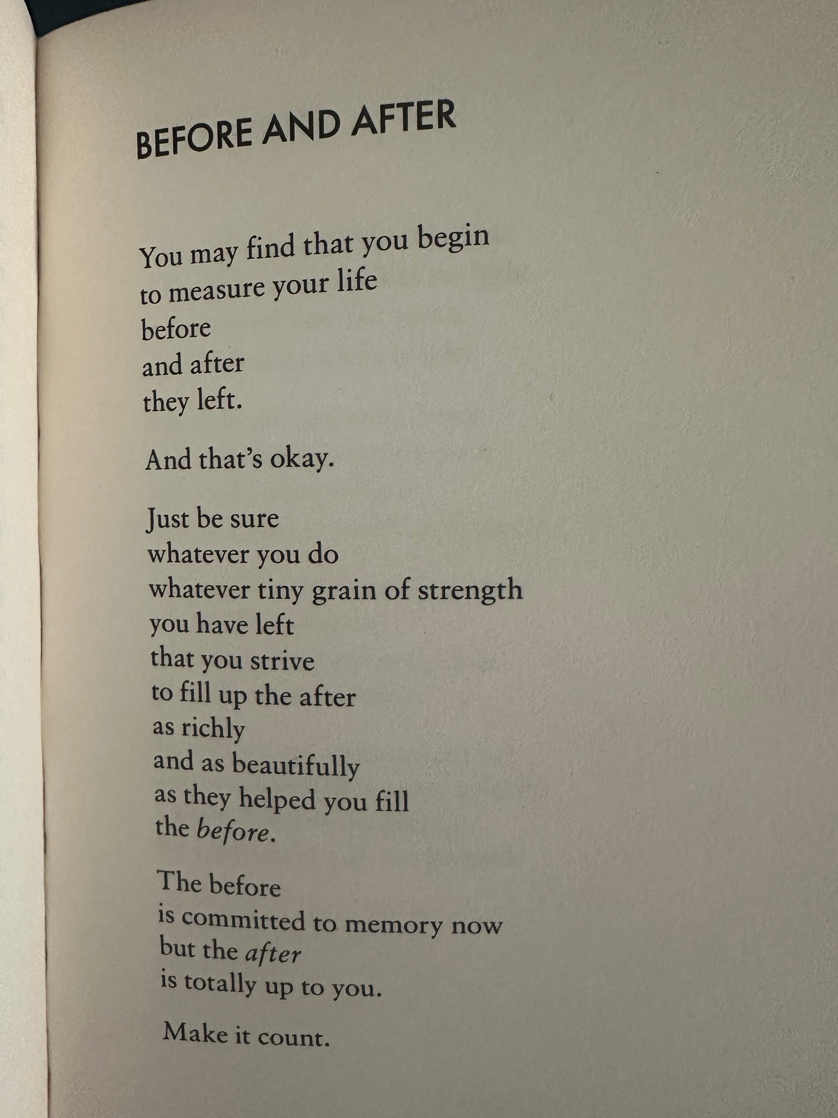Of course loving Tom also changed me, but that was gradual. Little-by-little letting him in, building our life together. Almost like a slow evolution, happening without any real start or finish. You don’t stop to realize or appreciate those, life just keeps moving along. Then boom Tom was dead. That one felt like tectonic plates suddenly shifting, leaving behind a distinct divide.