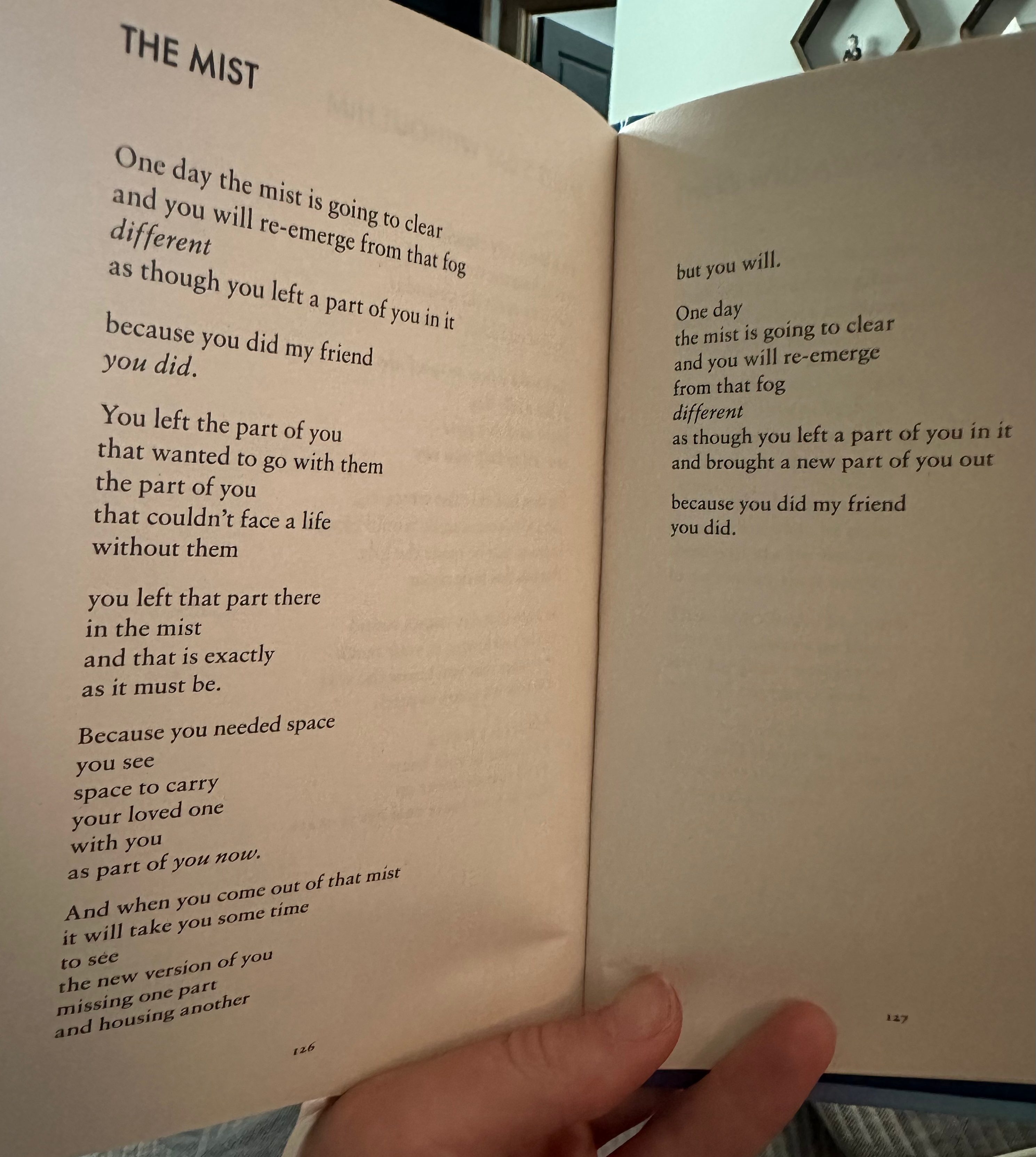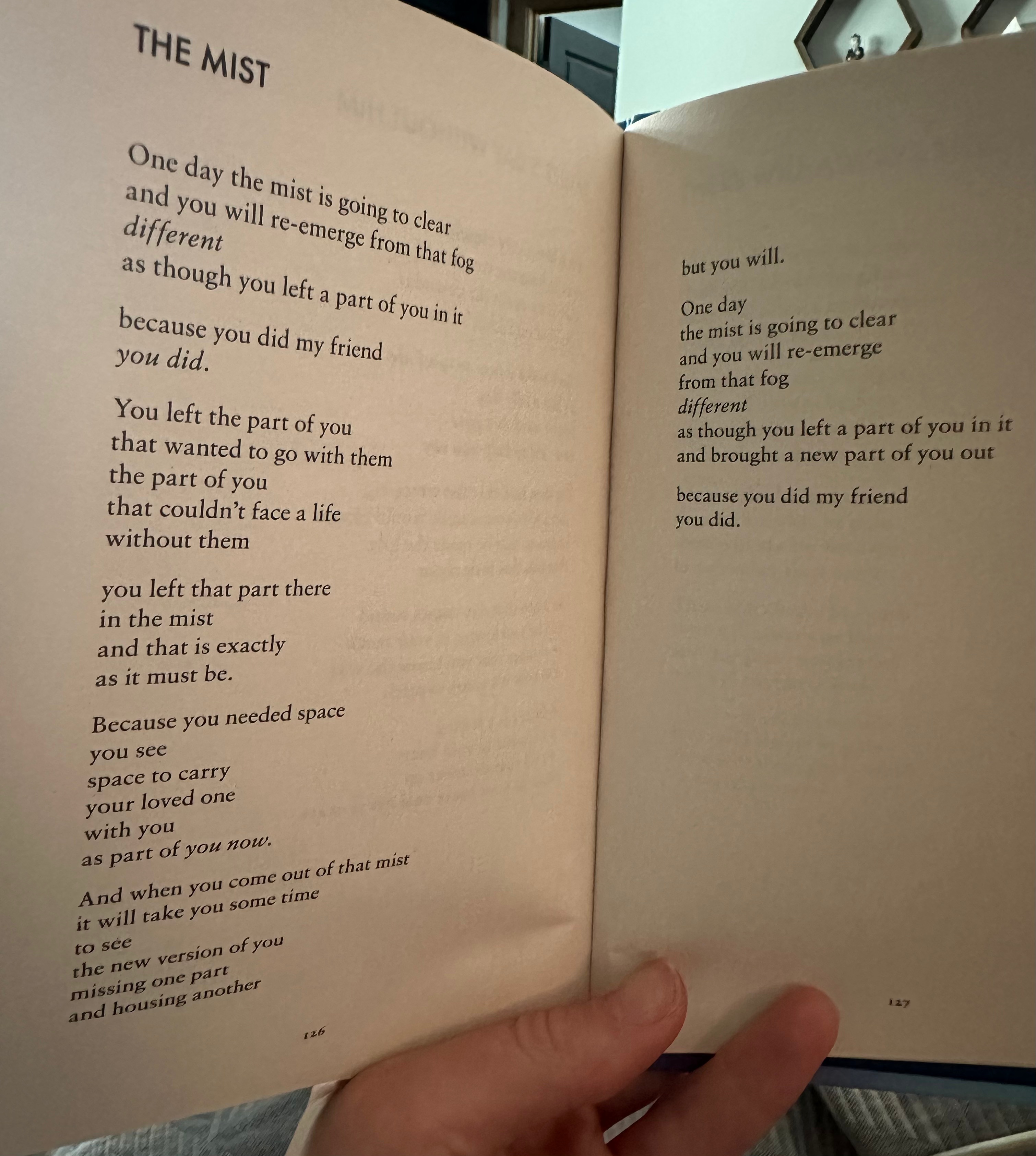 Sometimes I think I’ve settled into this new reality enough that I forget how much has shifted, how much work I’ve done and the unchartered territory I’ve had to navigate. I do feel myself scaling that cliff on the other side of the chasm at times, though it’s interesting to reflect on all that has changed and how much I now carry. This poem from Donna Ashworth is beautiful, and pulls out memories of very misty hiking Tom and I did in Iceland.
